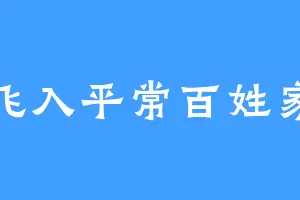 飞入平常百姓家